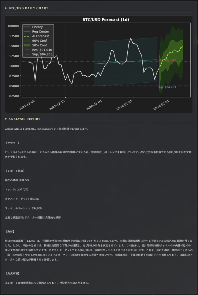 ZODIAC Engineは毎日Discordコミュニティにて、トレンド・ターゲット価格・抵抗帯を多角的に解析したデータを共有。ノイズを排した純粋な統計データを提供します。