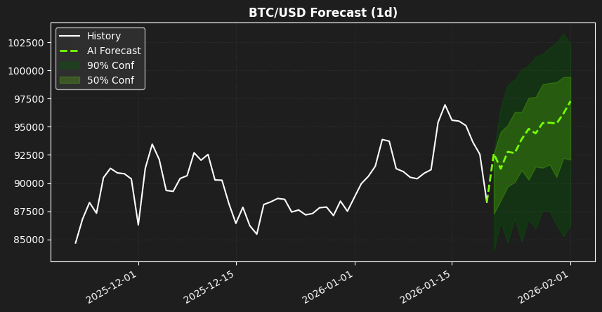 Zodiac AIによる01月21日のNAVIGATORランク分析結果をお伝えします。BTC/USDは$88,310で取引を終えましたが、トレンドは「UP」を維持しています。前日予測値($92,621)に対し、実際の終値は乖離(-4.65%)を示しました。これは主要ニュース(悪材料)の影響を受けた動きであり、当モデルの安定性維持のための仕様として許容範囲内です。次のターゲットを$92,621、最終ターゲットを$97,272と設定します。Oracleモデルなら 主要ニュース(悪材料)の影響 等を解析済です。 本情報は投資助言ではありません。投資判断はご自身の責任において行ってください。